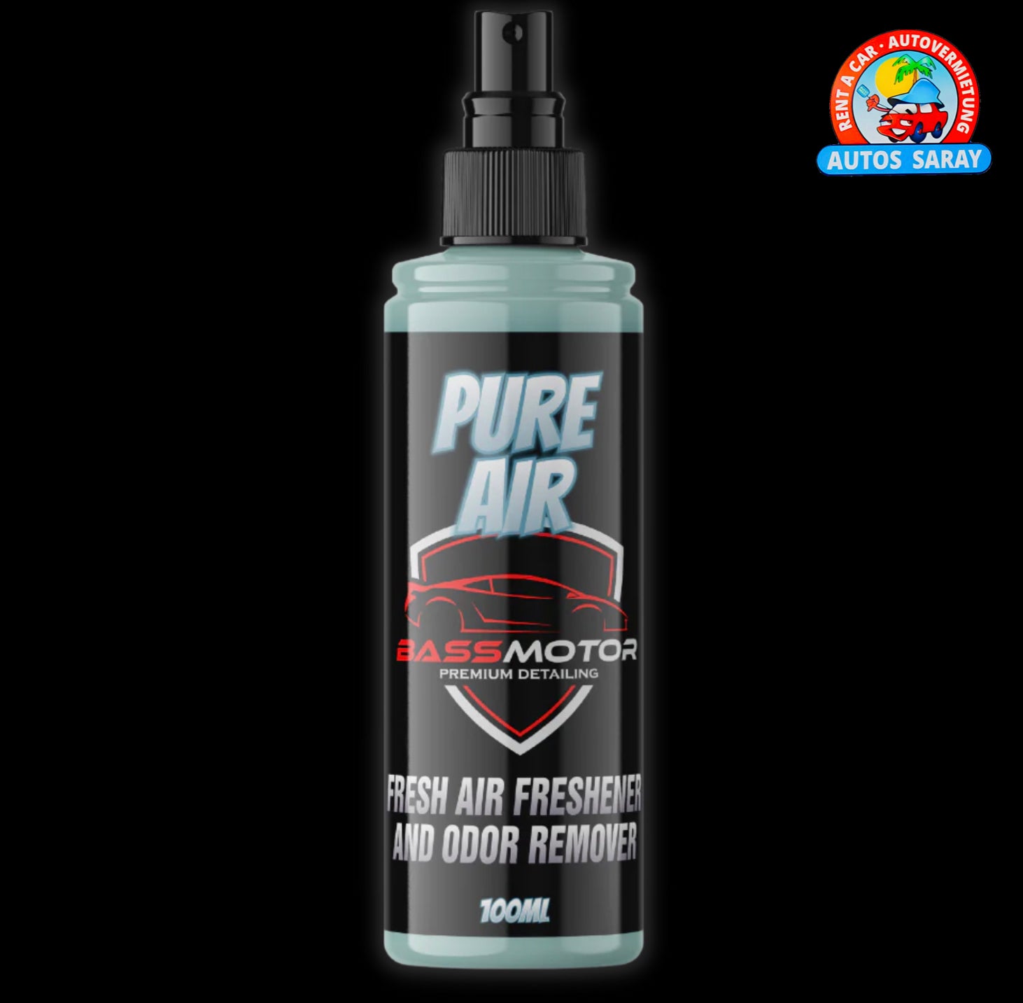 El PURE AIR 100 ML de BassMotor es un producto diseñado para refrescar el ambiente y eliminar malos olores en el interior de los vehículos. Se presenta como un ambientador y neutralizador de olores en formato de pulverizador.